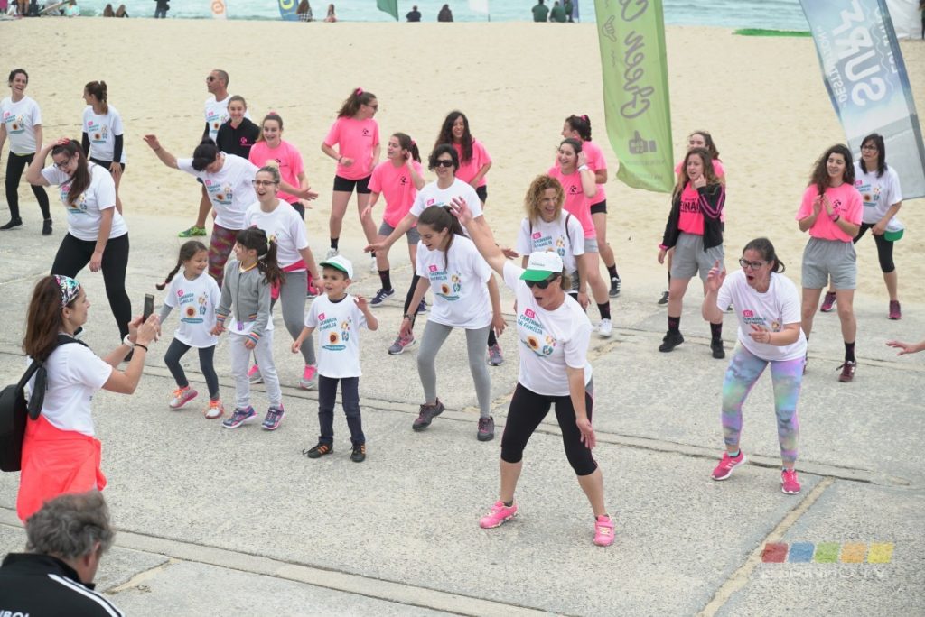 Começou por uma aula de aquecimento, de seguida a dita caminhada (saída edifício sede CSP, na Travessa da Junta nº 44 até Praia da Baía), por fim, contou com animação infantil e dance fit (Gym Marta Dias).