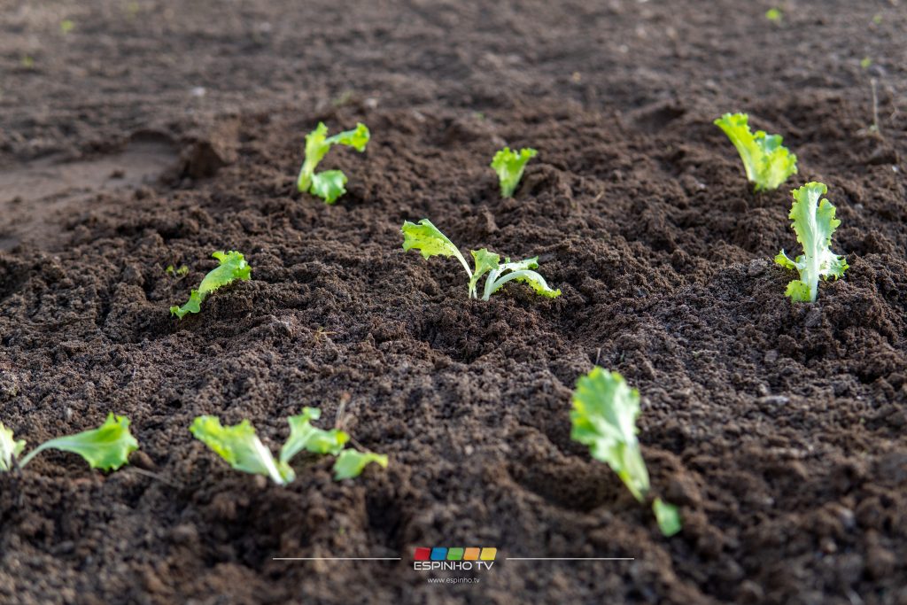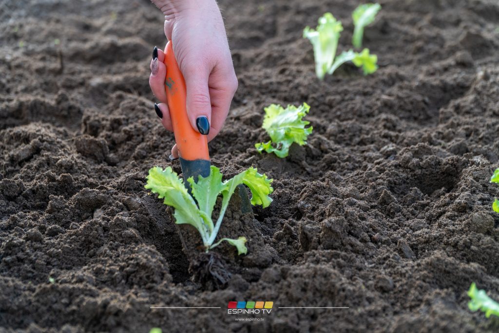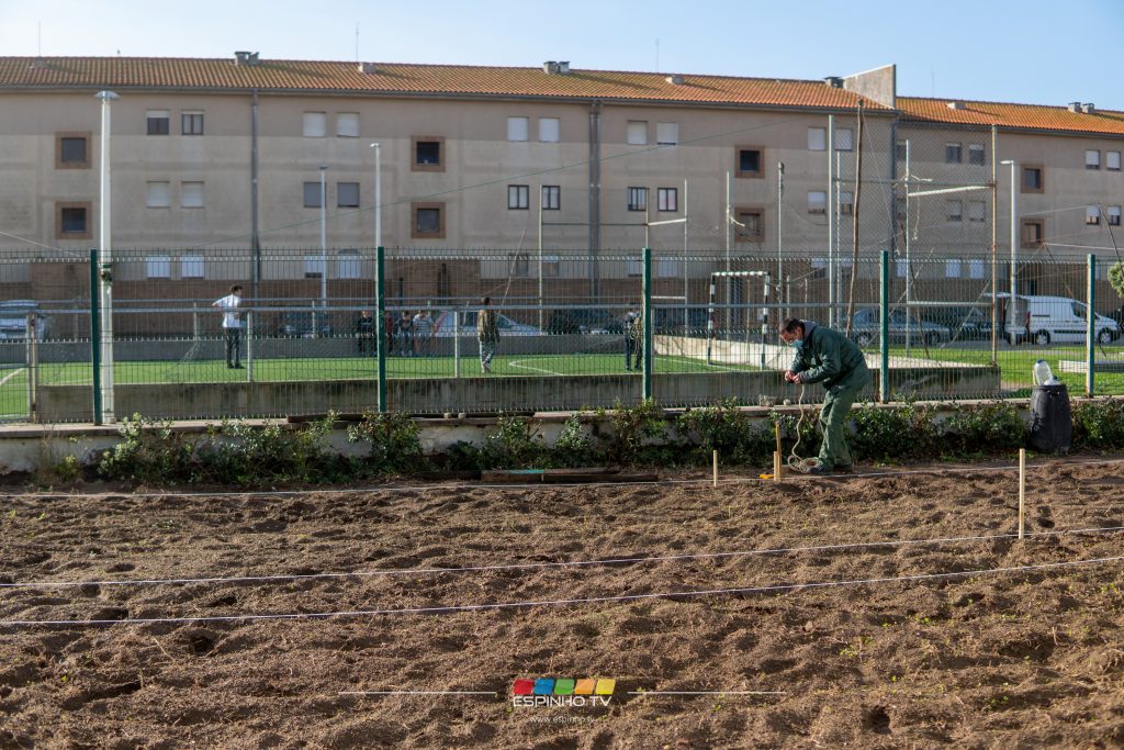 A horta encontra-se no espaço exterior do Polo Social da ADCE.