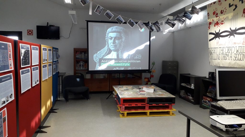 Assim, entre os dias 27 de janeiro e 4 de fevereiro, está programada a exibição dos filmes “Anne Frank, thegraphicbiography” da Anne Frank House, “TheBookThief”BrianPercival, o documentário “Winfrey&Wiesel -Auschwitz”e“Uma turma difícil”, de Marie-CastilleMentionSchaar. Está patente também na BE uma homenagem a Aristides de Sousa Mendes, cujo labor em prol das vítimas da perseguição Nazi levou ao seu recente reconhecimento como ‘Justo entre as Nações’ e um tributo aos portugueses enviados para os campos de concentração. No bloco central da escola sede é possível ainda visitar uma exposiçãosobre Anne Frank da Anne Frank House.