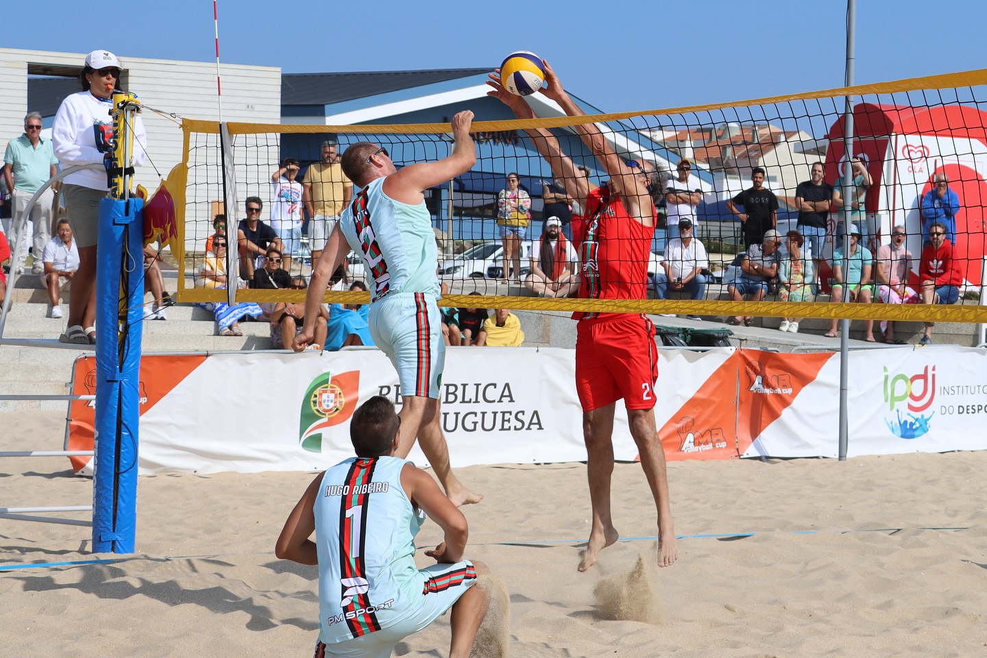 As duplas portuguesas (Maia/Afonso; Ribeiro/Oliveira e Alvar/Gonçalves) lideraram o primeiro dia (sexta – 25 julho) da competição, neste Espinho Beach Volleyball Master by AMB 2025.