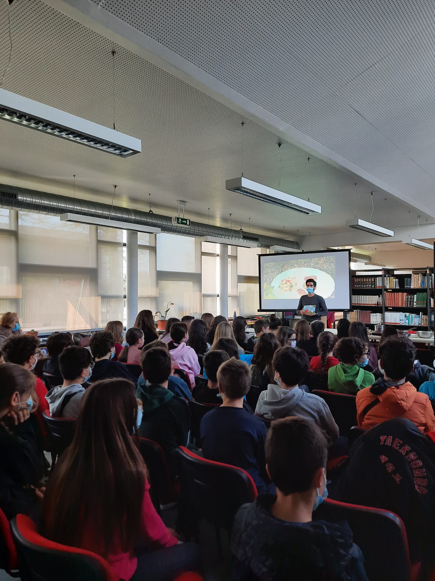 Dentre as muitas ações realizadas, destacamos Encontros de Autor, nas diferentes bibliotecas escolares do AEMGA: sessões com o escritor e apicultor Paulo Santos, nas escolas básicas de Paramos e de Espinho 2; um encontro online com a escritora Carla Garrido, na Escola Básica de Silvalde e a visita de Nuno Alvim, autor do livro “Alice no País das Lentilhas”, às Escolas Domingos Capela e Dr. Manuel Gomes de Almeida, com direito a showcooking e degustação, pois teve ajuda à produção de Sofia Ramos do “Terra Viva”.