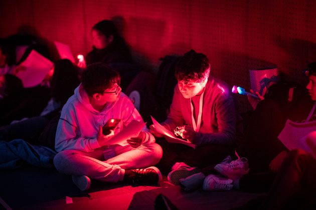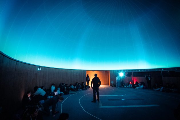 Durante uma noite inesquecível, um grupo escolar teve a oportunidade de dormir “ao relento”, mas dentro do planetário, num ambiente que recriou o céu estrelado. A atividade começou às 21h00 e terminou na manhã seguinte, por volta das 9h30, com os participantes bem preparados com os seus sacos-cama, almofadas e roupa confortável.