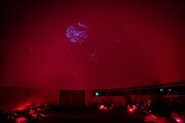 Ao longo da noite, os jovens exploradores tiveram a oportunidade de observar o céu noturno através do telescópio, apreciando em detalhe a Lua e as estrelas. Assistiram também à sessão “Terra no Espaço” e participaram numa Caça às Constelações, uma atividade interativa que os desafiou a encontrar diferentes constelações no céu projetado. No final, o momento mais mágico: adormecer sob um céu estrelado, dentro do planetário.